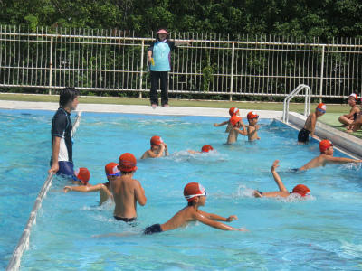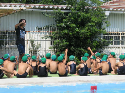8月6日(月)今日は、いよいよ水泳検定です。1学期中にたてた目標は達成できたでしょうか。みんな泳ぎが上手になりましたね。5年生は、少し時間がとれたので自由遊泳がありました。先生たちと元気に泳ぎました。