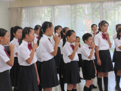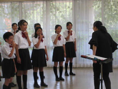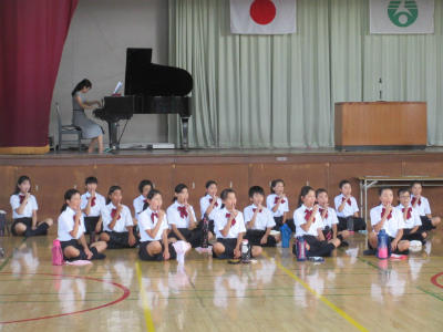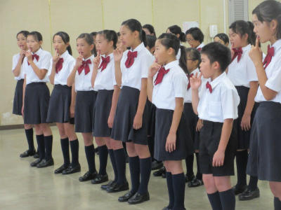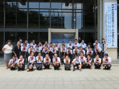 本校は、プログラムナンバー2番で出場し、課題曲「出発」自由曲「地球に寄り添って~センス・オブ・ワンダー~を堂々と伸び伸びと歌い上げました。14校の出場校の中から、6校が予選通過となり、本校は、見事8月9日(木)の本選に進むことが決まりました。おめでとうございます。よかったね。