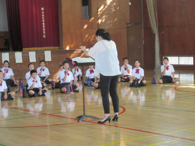 8月24日(金)11:00~小中合同夏季研修会が開催されました。本日は、株式会社明治 コミュニケーション本部広報部 専任課長 森 毅 様に御講演をいただきました。演題は「子供の体づくりのための栄養と運動・休養」についてです。アイスブレーキングからスタートし、大変和やかな雰囲気の中、講演会が始まりました。「自分の食べたもので体ができている」ことを実感しました。