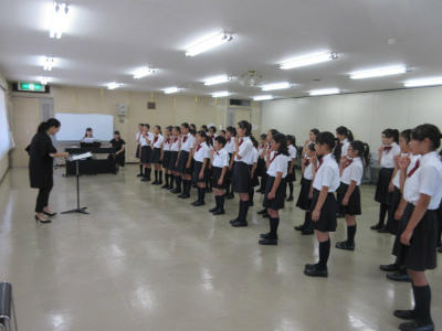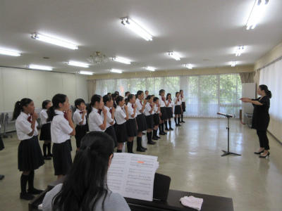 8月3日(金)13:00~合唱部が練習をしています。「NHK全国学校音楽コンクール」の本選は、来週の9日(木)です。1週間を切っています。今日も外部の先生に御指導をいただきました。音楽室の外からも、今日の歌声は迫力があると感じました。歌は表情を生みます。表情が歌を生むのでしょうか。顔に歌を愛する気持ちが表れます。自分を表現することを合唱部は教えてくれます。音楽はいいなと感じました。