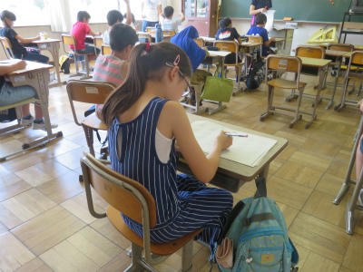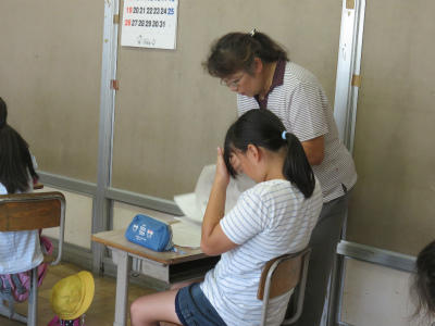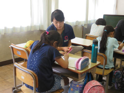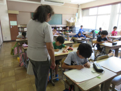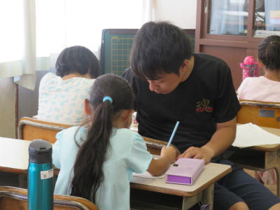 8月7日(火)ステップアップ教室が開かれました。今日は、朝から雨が降り、気温が低く、プール学習は中止となりました。ステップアップ教室には、元気に子どもたちが参加しました。今日も共栄大学の学生さんが3名、お手伝いに来てくれました。子どもたちの集中力も益々アップしています。よくがんばりました。