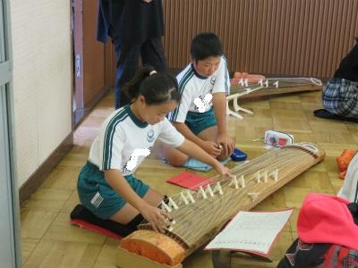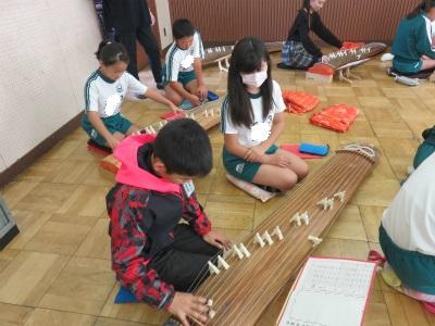 11月21日(水)4校時、宮西歌澄陽先生に御指導いただきまして、5年3組の「お箏教室」を開催しました。とても熱心に取り組む子どもたちに、先生からお褒めの言葉をいただきました。担任の先生も熱心に学びます。