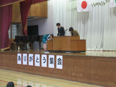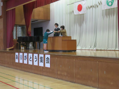11月26日(月)朝、体育館において「ありがとう集会」が開かれました。本校では、毎年、勤労感謝の日を機会に、働いている人たちや身近な人に対して感謝する気持ちを育てることをねらいとして、「ありがとう集会」を開いています。今日は、交通指導員さん、スクールガードリーダさん、登下校ボランティアのみなさま、春日部おはなしの会のみなさま、給食調理員さん、学校校務員さんに御出席いただきました。心を込めた書いたお手紙、お花を感謝の気持ちと共に贈りました。また、皆様から心温まるお言葉をいただきました。退場の際には、11月の歌、「ありがとうの花」をみんなで歌いました。今後ともよろしくお願いいたします。