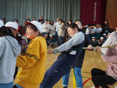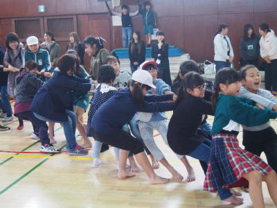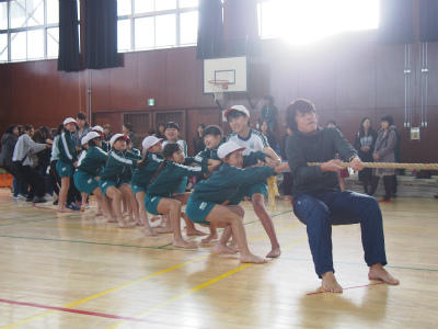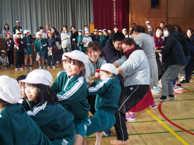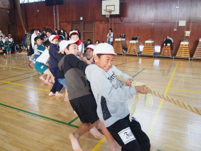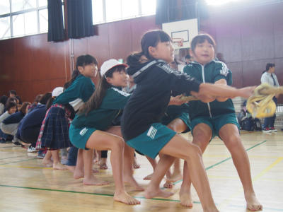 12月7日(金)6校時、体育館において「5年学年活動」が行われました。たくさんの保護者の皆様に御来校いただきました。今日は、親子一緒の綱引き大会です。