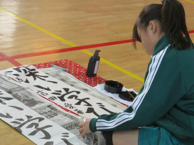 12月10日(月)放課後、体育館において、競書会選手による書き初め練習会が開かれました。墨の香りが漂う体育館は、空気もピリッとしています。文字に真心を込める。とてもいい時間、いい空間です。私も久々に筆を持ってみたくなりました。