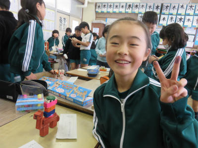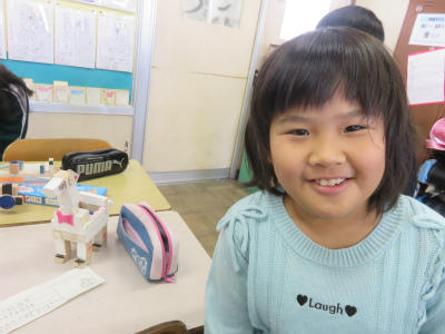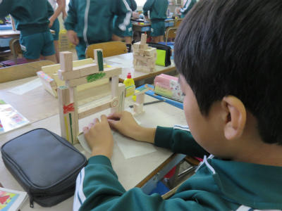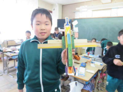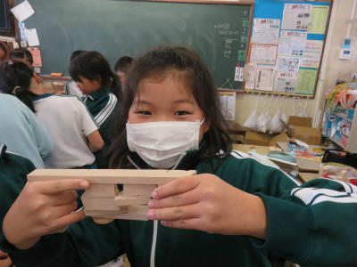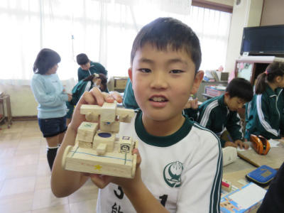 12月13日(木)2校時、3年1組が図工の授業で「のこぎりひいてザク・ザク・ザク」の作品が完成しました。「うさぎ」「白馬」「ピストル」「小物入れ」「飛行機」・・・。上手にできました。みんなの豊かな発想に感動しました。大人になると、この感性をどこかに置き忘れてしまうのでしょうかね。この年齢ならではの作品です。