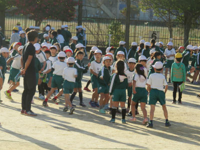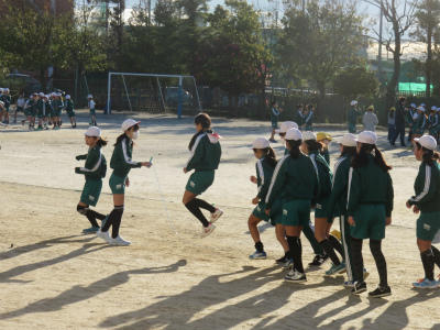 12月13日(木)朝、校庭において元気タイムを行いました。今日は、長縄の練習です。各クラスから2チーム出場しての「校内なわとび大会」が実施されます。今年は、1月31日(木)、2月7日(木)です。昼休みにも練習をしている成果が表れています。立野っ子は、今日も元気一杯です。応援してください。