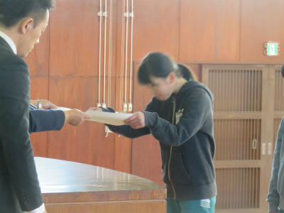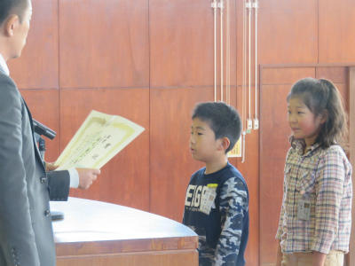 今日は、「市内美術展 平面の部 金賞」「市内美術展 立体の部 金賞」「景観絵画コンクール 銅賞」「人権ポスター」「第43回春日部市農業祭書道展 銀賞」の表彰でした。よくがんばりました。