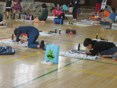 12月4日(火)1校時~4校時、体育館において「校内競書会」が開催されました。今日は、3年生と5年生の部です。落ち着いて、一生懸命に、丁寧に筆を走らせています。伸び伸びとした字には、みんなの思いが込められているようです。また、5年生の競書会では、場の空気がピーンと張りつめているような気さえしました。静寂の中、ひたすら筆を進めたことと思います。とてもいい墨の香りがしました。