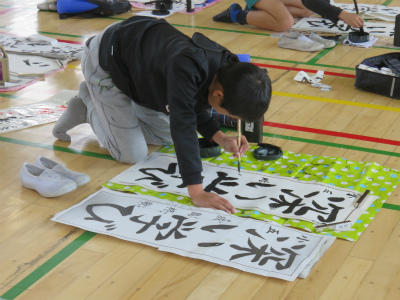 12月10日(月)放課後、体育館において、競書会選手による書き初め練習会が開かれました。墨の香りが漂う体育館は、空気もピリッとしています。文字に真心を込める。とてもいい時間、いい空間です。私も久々に筆を持ってみたくなりました。