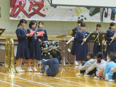 12月11日(水)10:00~体育館において、「文化芸術による子どもの育成事業 音楽鑑賞会」が行われました。今日は、JILTONE(ジルトーン)<フルート、マリンバ&パーカッション、ピアノのトリオの演奏グループ>による演奏会です。低学年、中学年、高学年と3つの学年に分けての鑑賞会となりました。いろいろなリズムに心を弾ませ、楽しい時間となりました。文化庁による芸術家の派遣事業 音楽鑑賞会が本校で開催されたことは、またとない幸運であったと思います。