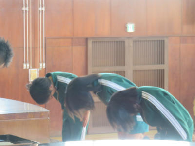 司会の先生からは、返事が特によくできた人の名前が読み上げられました。これからも、誇りを持って堂々と返事をしましょうね。