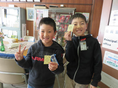 12月13日(木)業間休み、昼休みを使って、大勢の子どもたちが校長室にやってきます。今日もたくさんの合格者が出ました。