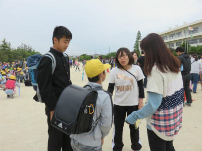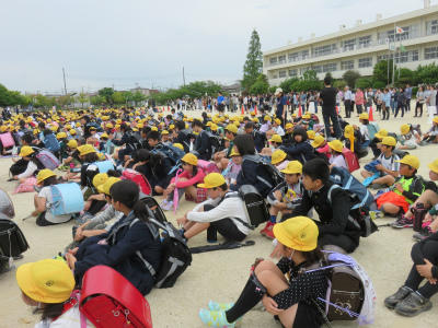 このあと、小中合同の引き取り訓練になりました