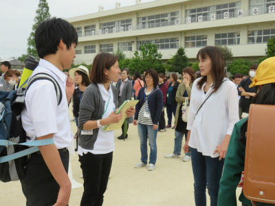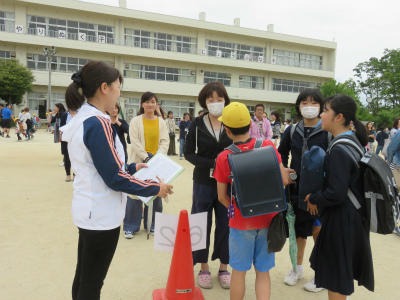 5月15日(水)小中学校それぞれの避難訓練を終えて、立野小学校校庭で「小中合同避難訓練」が行われました。大増中学校のみなさんが、来校して下さり、弟や妹と合流します。その後、保護者のみなさまを交えての引き取り訓練へと移りました。速やかに訓練が終了しました。御協力ありがとうございました。