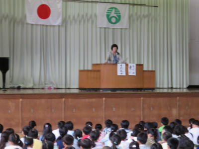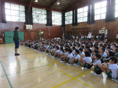 5月29日(水)朝、体育館において「お話朝会」がありました。