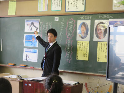 5月17日(金)4校時、6年2組において教育実習生の授業がありました。今日は道徳です。「こだわりのイナバウワー」という資料から、日々の生活が人々の支え合いや助け合いで成り立っていることに感謝し、それにこたえる態度を養う、ということを学びました。フィギアスケートの羽生選手が、荒川静香さんに感謝の気持ちを込めて、得点にはならないイナバウワーを演じた、という話です。人は人に支えられていることに思いが高まりました。