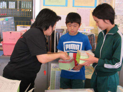 5月23日(木)5校時、6年1組は森田教諭の家庭科です。調理実習に備えての授業です。