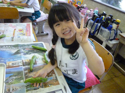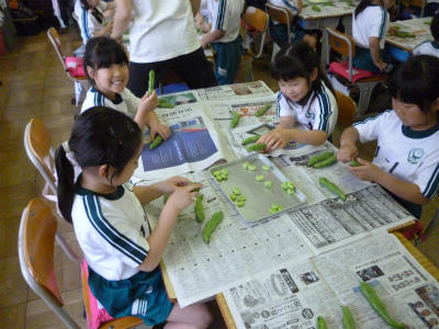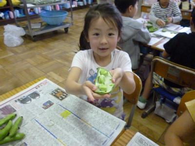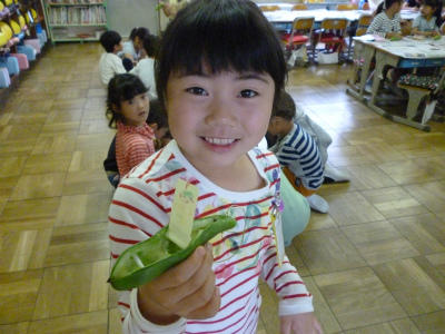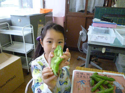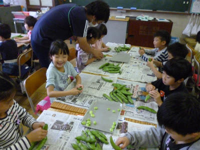 3年生「グリンピースのさやむき」!!