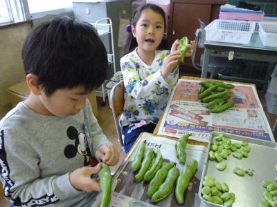 1年生「そらまめのさやむき」!!