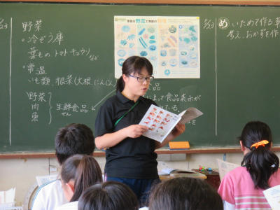5月30日(木)5・6校時、調理室において6年2組の調理実習が行われました。炒めることを学び、早速手近な朝食づくりに生かしてほしい内容でした。今日は、卵と野菜を炒めました。おいしくできたようです。