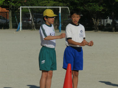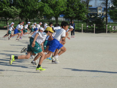 5月10日(月)朝、校庭において陸上練習がありました。6月6日(木)の「市内陸上大会」に向けての練習が始まっています。五月晴れの気持ちのよい朝です。元気一杯の様子です。