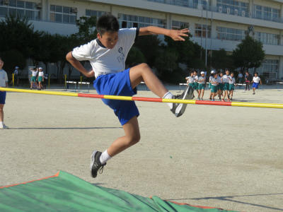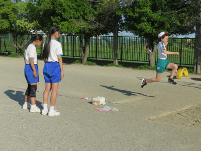 5月15日(水)朝、おは走を終えて、4年生から6年生の選手のみなさんんが陸上練習をしています。今年から学校対抗はなくなりましたが、自分の記録に挑戦する姿勢に変わりはない、と話しています。先生と一緒に汗を流し、「走る」「跳ぶ」「跳ねる」・・・。生き生きとした姿に、思わず目を止めます。