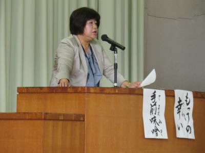 また、今日は「もっけの幸い」「手前味噌」という話をしました。昨日、来客者に対しての礼儀が素晴らしかった児童の話に触れ、たくさん立野っ子を褒めました。