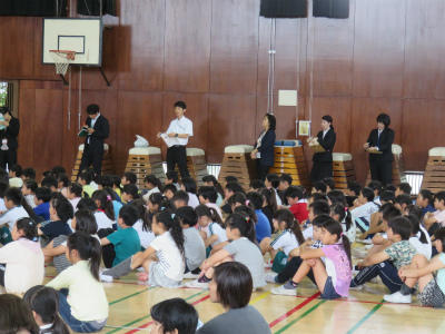 小中一貫教育の取り組みのひとつです。中学生の姿をしっかり見て、小学生がいよいよ成長してくれることも願っています。