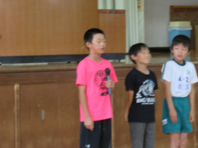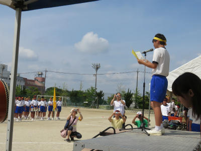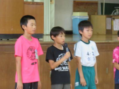 また、各学年の子どもたちからもプール開きに臨んでの意見発表がありました。どの学年のこどもも、原稿を見ず、自分の言葉で語ることができました。さすがです。特に6年生の代表児童の発表は立派でした。①基礎基本をしっかり学びたい②先生の話をよく聞く②友達と学び合いたいという3つの目標が述べられました。素晴らしいですね。