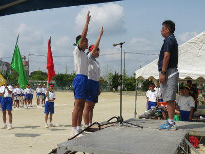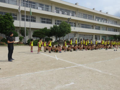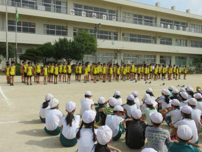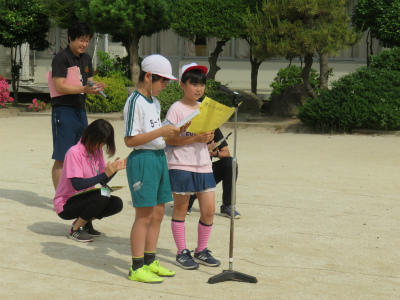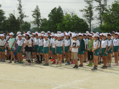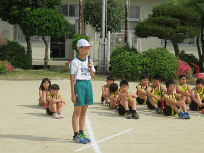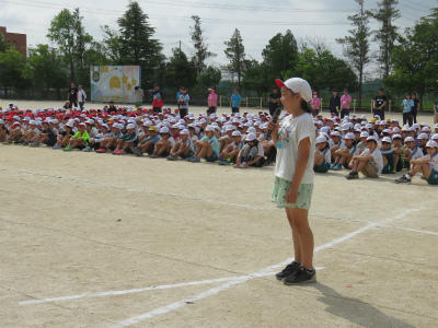 6月4日(火)朝、陸上大会壮行会が開かれました。6日(木)はいよいよ市内陸上大会です。今まで練習してきた成果を思う存分発揮してほしいと思います。全校児童で選手団にエールを送りました。選手団長からも力強いあいさつがありました。