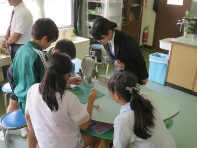 文教大学から教育実習に来ている4名の実習生が授業を行いました。大学からも先生が来校され、御指導をいただきました。