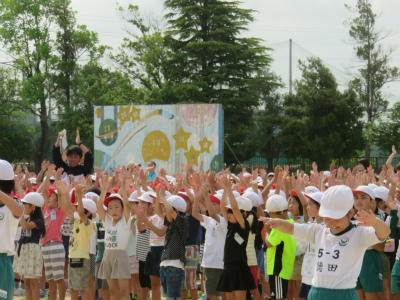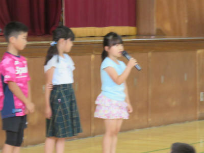 6月19日(水)朝、体育館において音楽朝会が開かれました。6月の歌「世界中の子どもたちが」を元気よく歌いました。
