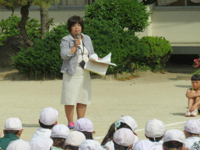 また、出発の前に学年主任の先生から、あいさつの素晴らしかった男子児童を讃えるお話がありました。校長は見送りに出ていたとき、ほとんどの子どもが通り過ぎる中、その子どもは立ち止まって「校長先生、おはようございます」とあいさつをしてくれました。あまりにも素晴らしかったので、すぐに学年主任と担任の先生に伝えたところでした。2年生!すばらしいね。