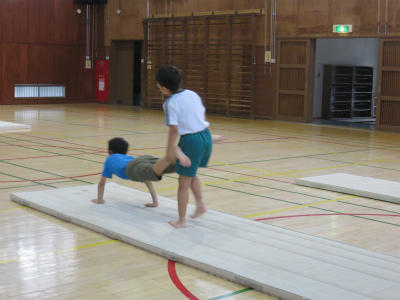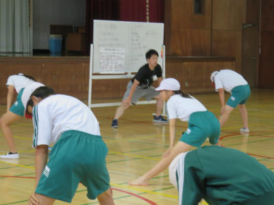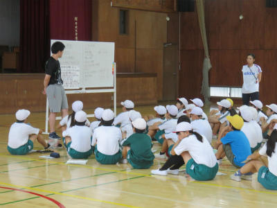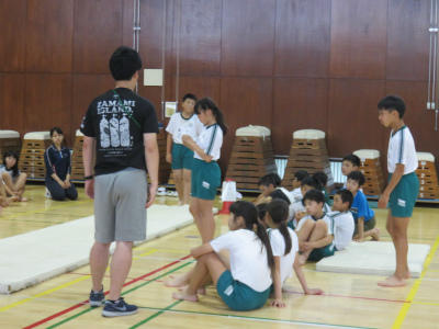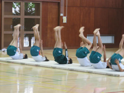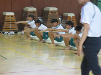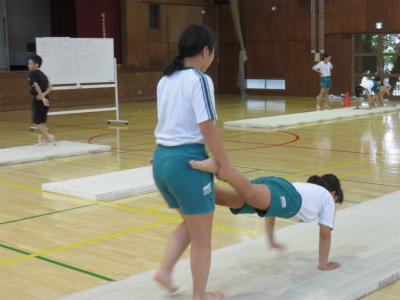 6月7日(金)5校時、体育館において教育実習生の授業がありました。今日は、6年生のマット運動です。既習事項を生かし、側転の学習につなげていました。