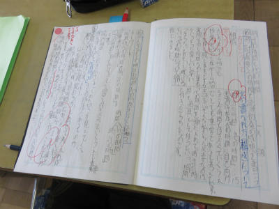 今日は、練習の最終日です。先生と一緒に市内展覧会に出品する作品を選びました。