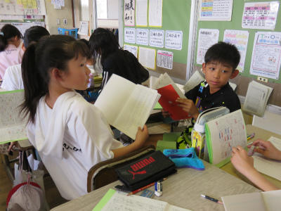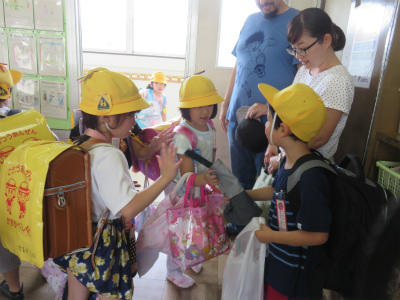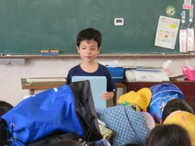 6月14日(金)とてもさびしくなりました。実は、今週の月曜日から海外からの体験入学生を受け入れ、1年1組で一緒に過ごしました。とてもかわいらしい男の子でした。今日でお別れです。一緒にプールに入ったこと、算数のお勉強をしたこと、給食を食べたこと、校長室にインタビューに来たこと。いろいろなことが思い出されます。物おじせず、果敢に日本の文化や生活と向き合った彼からたくさんのことを学びました。