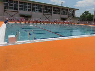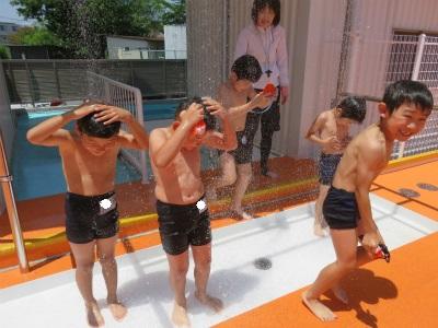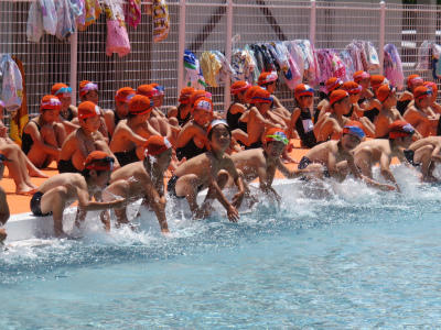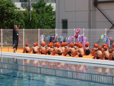 昨年度末までプール改修工事が行われ、立野小のプールは見違えるほどになりました。今日もプールサイドのオレンジ色がまぶしく感じました。よい環境が整ってよかったです。