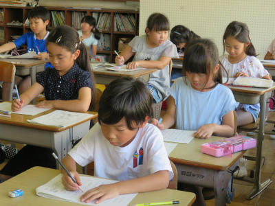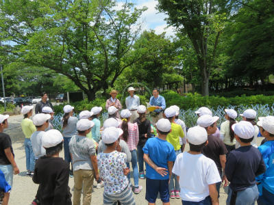 6月19日(水))9:35~4年生を対象とする「環境学習講座」が開かれました。今年も埼玉県生態系保護協会春日部支部のみなさまに御指導をいただきました。「身近ないきもの」について学ぶ授業です。立野の森の中や校庭を廻り、分かりやすくお話をいただきました。立野の森にもたくさんの生きものがいたようです。子どもたちも目を輝かせていました。ありがとうございました。