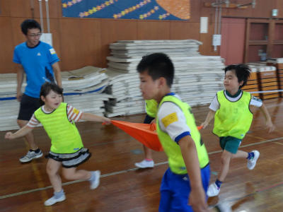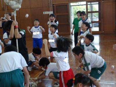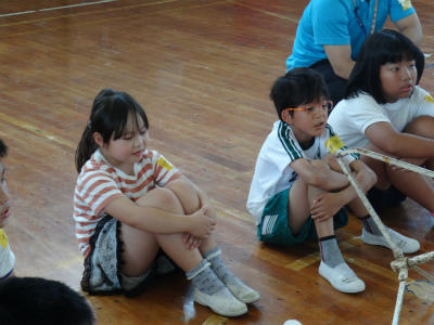 6月26日(水)昼、校庭において「立野っ子集会」が開かれました。縦割りでグループをつくり、クイズに答え、協力し合いました。全員がテープを握っていることがルールのひとつです。6年生は下級生をよくリードしました。暑さに負けず、がんばりました。集会委員のみなさん、ありがとうございました。
