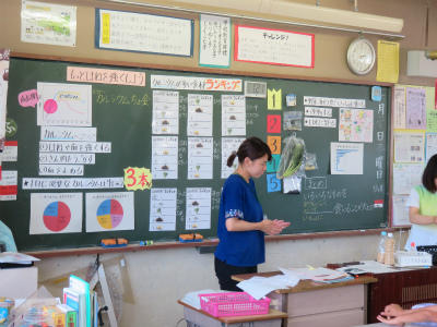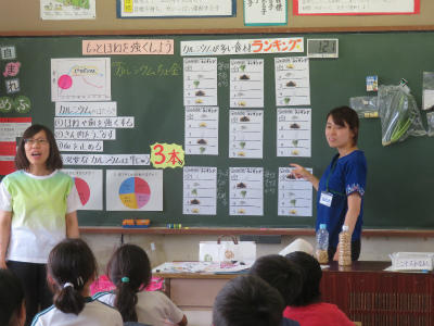 6月19日(水)4年3組において、担任と栄養教諭による食育の授業が行われました。今日は、「強い骨を作る」「カルシウム」についての授業です。丈夫な体をつくる時期です。子どもたちも楽しみながら、自分の体について学びました。