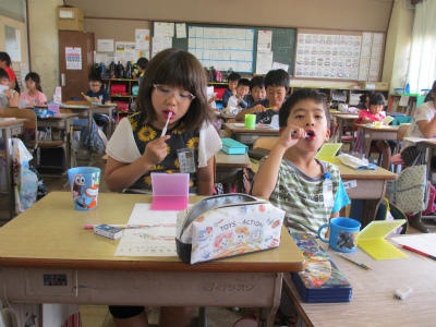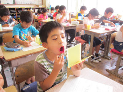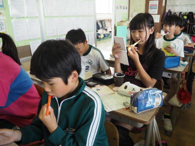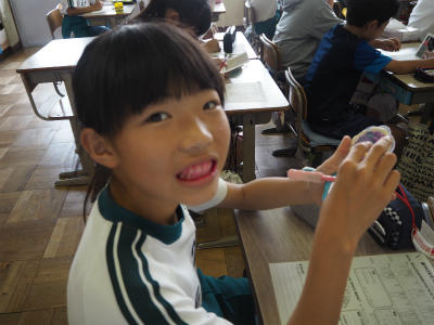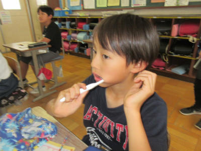 6月19日(水)養護教諭による6年生対象の「歯科指導」が行われました。染め粉を使って、磨き残しがないかをチェックします。歯は一生もの。大事にしましょうね。
