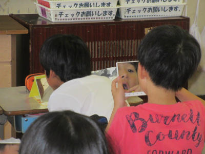 6月18日(火)養護教諭による5年生対象の「歯科指導」が行われました。大切な歯を守ることは、生涯の健康につながります。鏡を使ってチェックします。食後の歯磨きに磨き残しはありませんか?