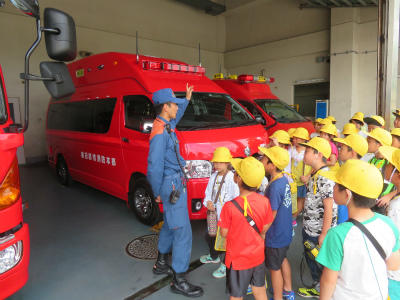 6月25日(火)、4年生が校外学習に出かけました。今日は、春日部消防署の見学です。お忙しい中、大変お世話になりました。煙体験や消防車や消火訓練の見学など、学びを深めることができました。立野小は、警察署も消防署も税務署も、学校の周りにたくさんの公的な機関があり、大変恵まれていると感じました。