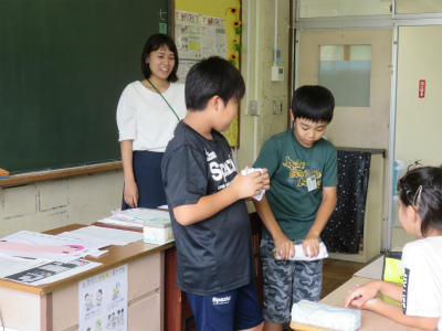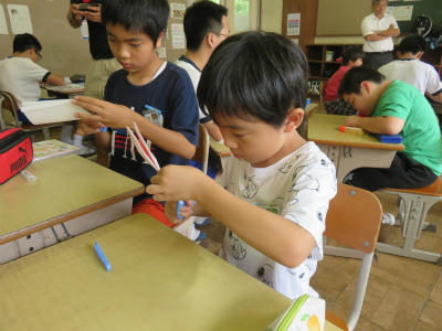 7月1日(月)、今日は待ちに待った「放課後子ども教室・立野っ子ひろば」の日です。今日は、6つの講座が開かれました。①スポーツ吹き矢②アロマ消臭剤を作ろう!③料理教室(串だんご)④お茶⑤キッズ防災マスターに挑戦!⑥科学教室(表面張力ってなんだ?)の6講座にたくさんの児童が参加しました。楽しいのはもちろん、貴重な勉強の機会にもなりましたね。