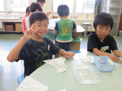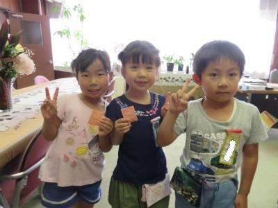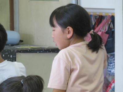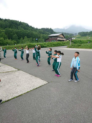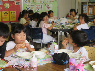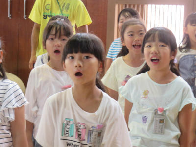 7月26日(金)9:00、やっと晴れました。青空が懐かしく感じます。いよいよ夏本番でしょうか。元気な声が響きます。「気持ちいい―」という声も聞こえました。
