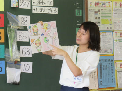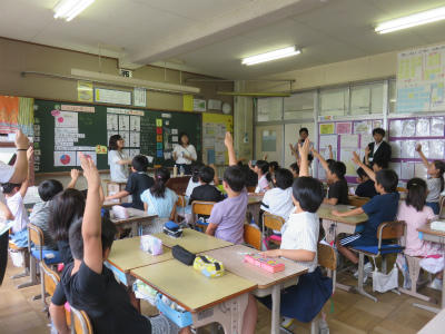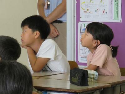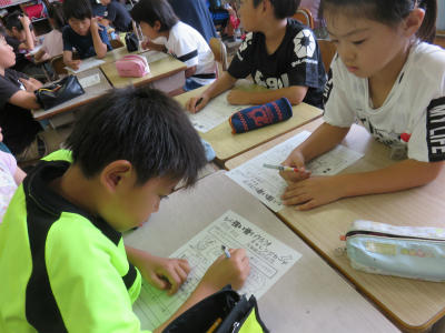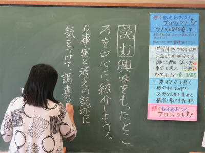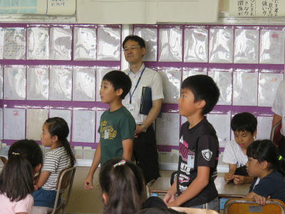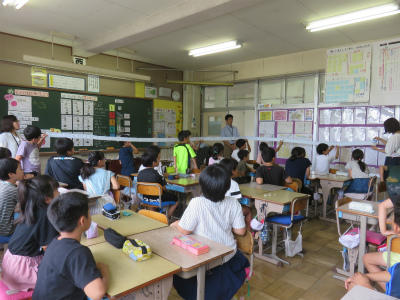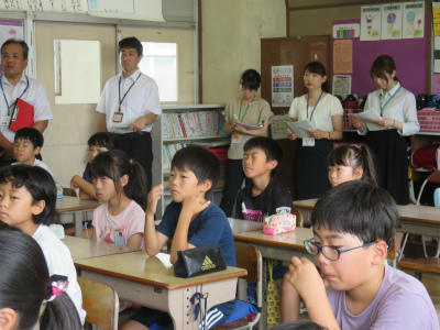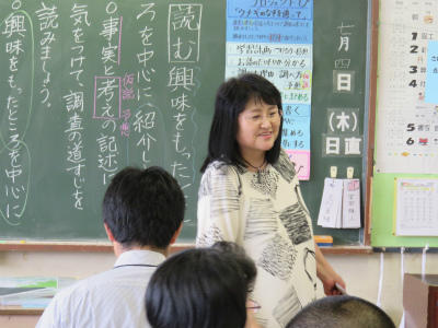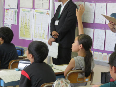 7月5日(金)6校時、4年3組において「国語」の研究授業がありました。「動いて、考えて、また動く」という教材です。段落相互の関係に着目しながら、文章を読み進めました。