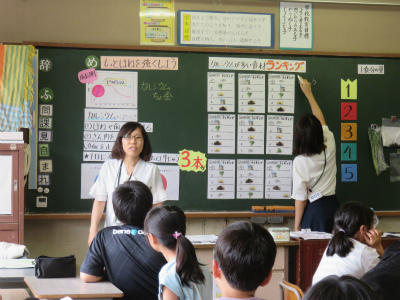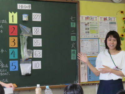 7月2日(火)、本校を会場として「令和元年度 学校栄養職員等5年経験者研修」が行われました。施設設備の見学を終えた後、4年3組の学級活動を参観していただきました。今日の単元は「もっと骨を強くしよう」です。カルシウムは、どんな食品から取れるのか。どうとったらいいのか。給食で採れる量はどのくらいか。いろいろなことを学びました。活発に挙手をし、発表していました。