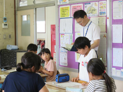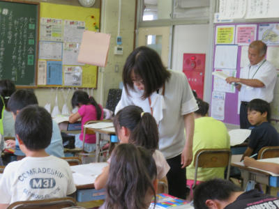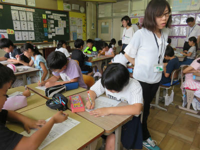中学生のお兄さん、お姉さんは、わからないところを丁寧に教えて下さいます。また、ドリルの丸つけをしながら、教えてくださいます。中学生は、小学生の憧れです。お忙しい中、ありがとうございました。