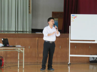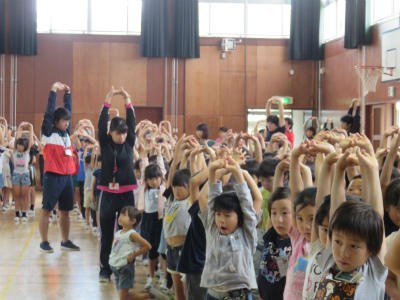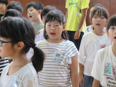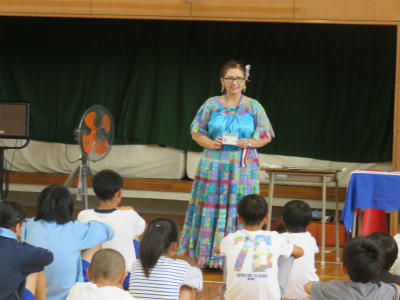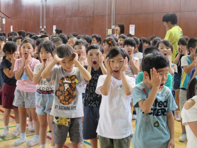 7月2日(火)朝、体育館において児童朝会「イングリッシュ集会」がありました。ALTの先生と一緒に音楽に合わせながら、楽しく英語を学びました。